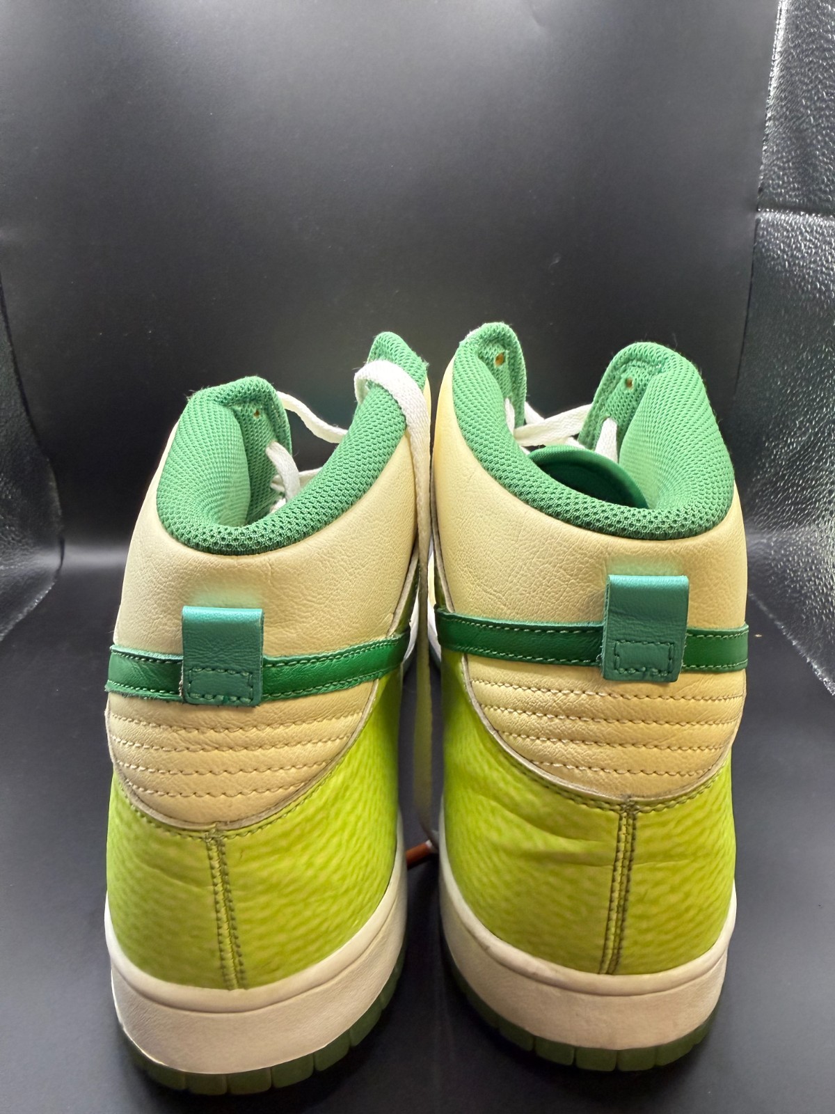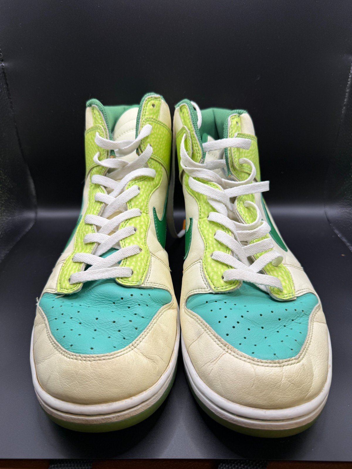 Rare and hard-to-find pair from the 2007 Dunk era. Featuring a bold mix of cream, lime, and green tones with glow-in-the-dark details on selected panels — a standout throwback with real collector appeal.